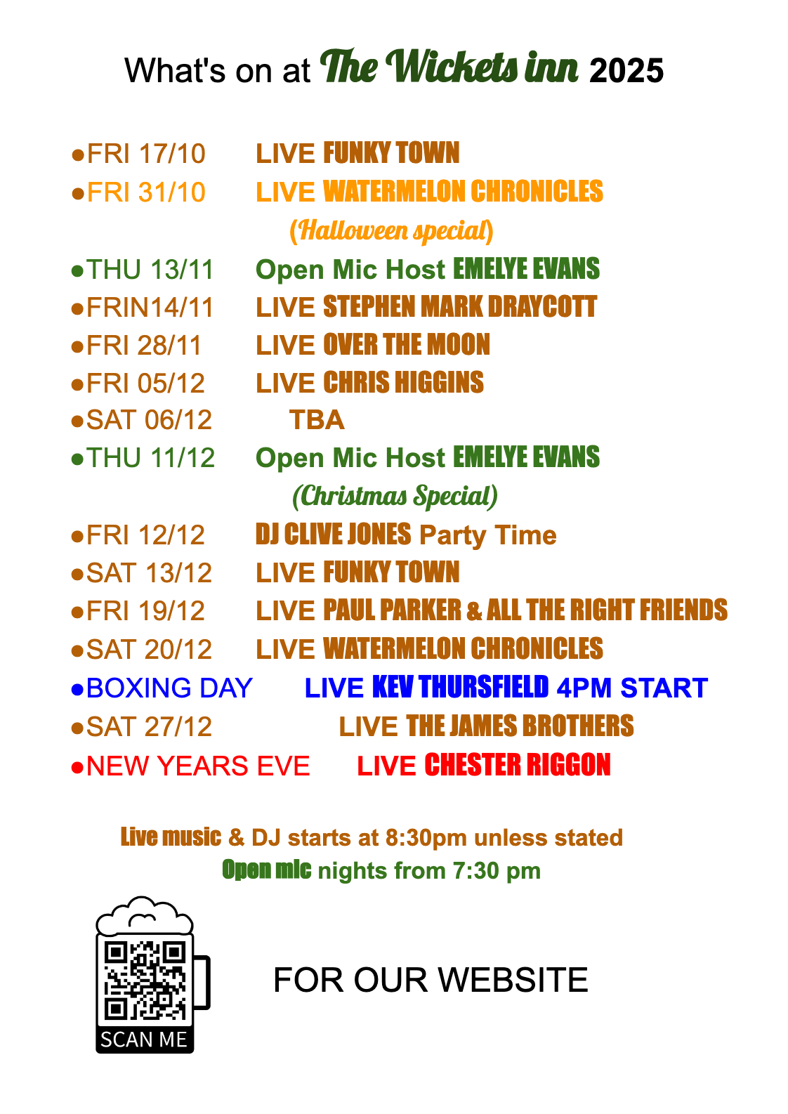 Live music & DJ starts at 8:30pm unless stated. Open mic nights from 7:30pm.